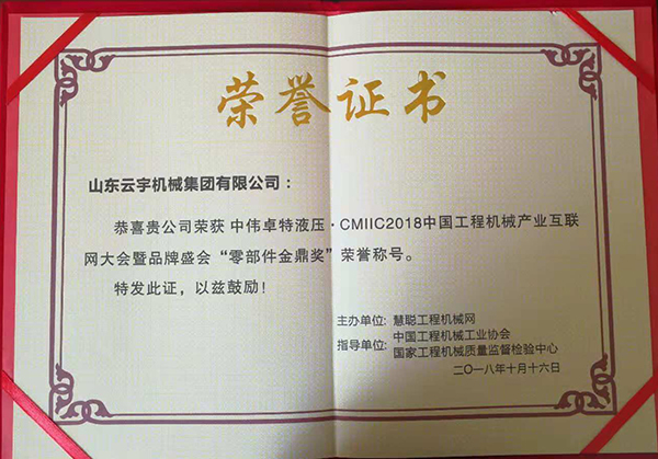 Zhongweizhuote Hydraulic CMIIC2018 China Construction Machinery Industry Internet Conference and Brand Festival "Parts Golden Ding Award" Honorary Title